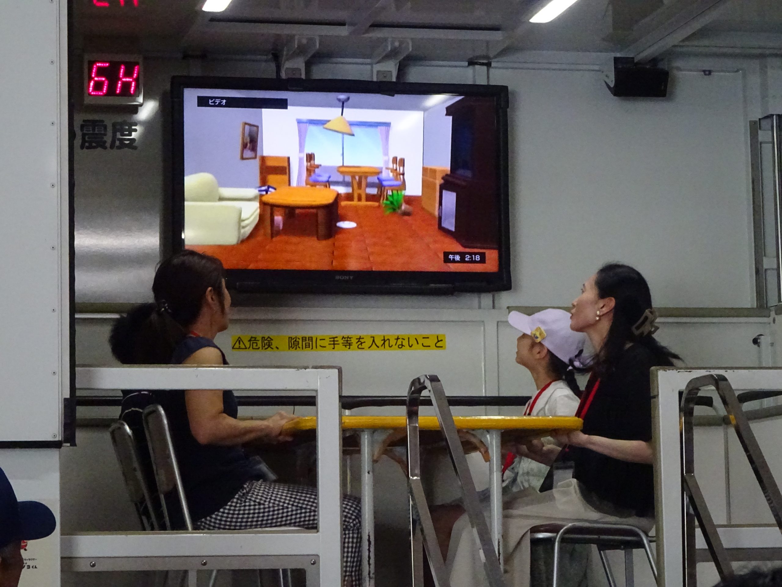 地震体験車で震度7や6強の揺れを体感したほか、令和6年能登半島地震の被災写真を見ながら、地震の揺れの強さや被害の大きさについて学びました。